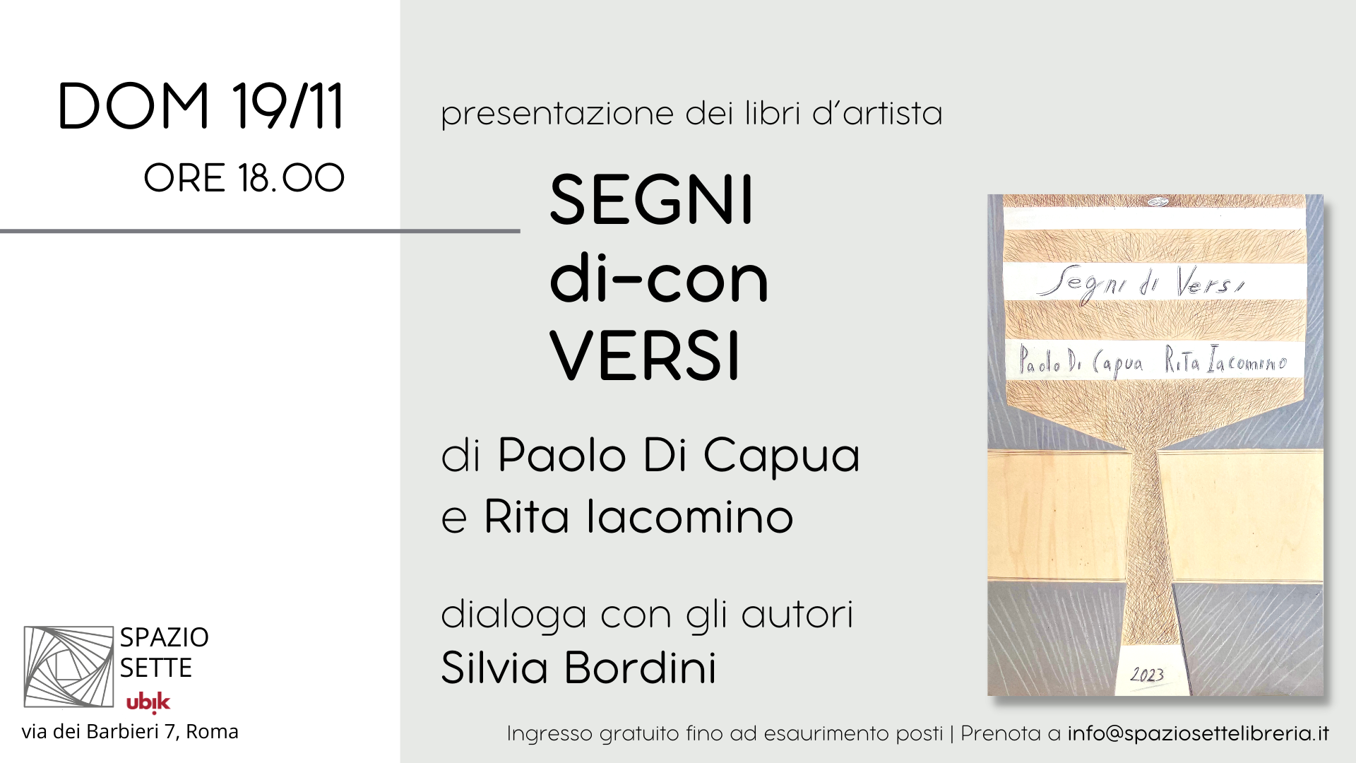 Per prenotazione scrivere a info@spaziosettelibreria.it