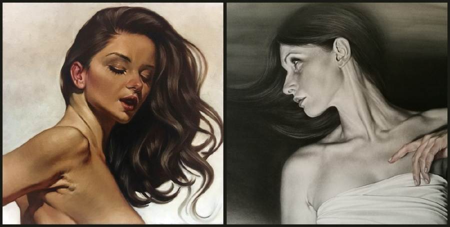 La tecnica pittorica magistrale dei ritratti e della figurazione di Antonio Caputo, classe 1976, risente dell’influenza del suo docente accademico Omar Galliani anche se i colori caldi di cui la sua opera è intrisa, ci riportano alla mente i muri degli affreschi pompeiani conditi con un ricordo manierista alla Bruno D’ Arcevia, da cui è stato per anni a bottega. Queste figurazioni si sposano con i bianchi e neri dei disegni iperrealisti di Cetti Tumminìa, classe 1977. La sua ricerca privilegia la grafite ma sperimenta, al contempo, molteplici supporti e diversi mezzi pittorici. L’artista mette in scena un caleidoscopio di personaggi, per lo più femminili, che rappresentano gli stati d’animo insiti in ognuno di noi.