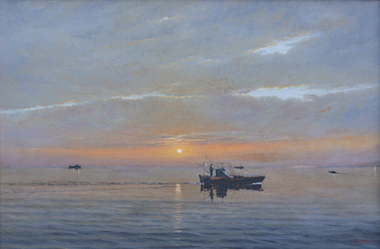 Altro fulcro fondamentale fu infatti per loro anche la cultura austro-tedesca. E non a caso nelle opere di molti di questi, così come in quella di Colussi, compare spesso una luce azzurro-grigia, che più che un colore rappresenta un’atmosfera, una sorta di evocazione di quello “sturm und drang” (tempesta e impeto), che nel mondo germanico pose le basi del Romanticismo: punti di riferimento che costituiscono delle interessanti chiavi di lettura della pittura dell’autore triestino, in particolare per quanto riguarda la sua interpretazione del tema della veduta marina, che sa rivisitare attraverso intuizioni, luminosità e ispirazioni che alludono istintivamente anche alla cultura visiva mitteleuropea.