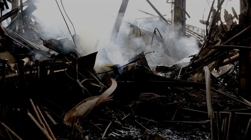 La seconda tranche del percorso è costituita da 8 pezzi della serie Macchie, buchi e fili (2019, tecnica mista), che allude alle sezioni del cervello di Lenin. In URSS era stato fondato l’Institut Mozga [Istituto di ricerca del cervello] per studiare quello del defunto e geniale leader. Gli scienziati internazionali che hanno studiato i dati disponibili sono spesso giunti alla conclusione che il cervello di Lenin mostrava caratteristiche tipiche dei malati di mente. Ma la serie rappresenta soprattutto la soggettività della storia, evidenziando le macchie bianche e i buchi neri della conoscenza storica, rivelando fili invisibili che collegano eventi completamente estranei. Alle otto tecniche miste fanno coerente riscontro due video: il primo testimonia l’incendio che distrusse lo studio dell’artista a Mosca nel 2016; il secondo, Abiti bianchi, ricava il titolo da un’affermazione dell’Apocalisse di Giovanni («Questi che sono vestiti di bianco chi sono e da dove vengono? […] Sono quelli che vengono dalla grande tribolazione...») ed è dedicato agli scienziati uccisi durante gli anni della dittatura staliniana.