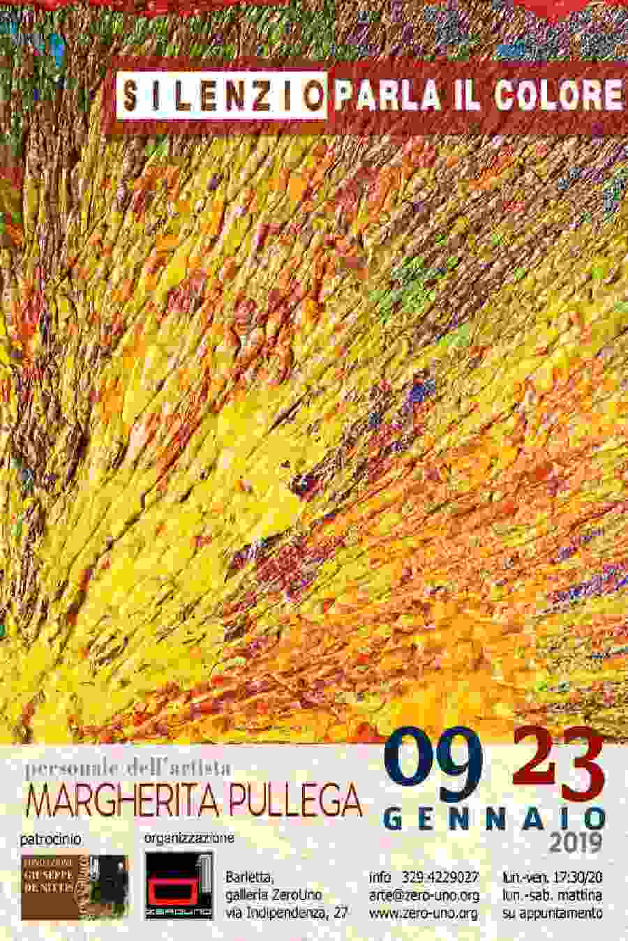 Ho visto le opere di Margherita Pullega su internet e per una serie unica di destini assurdi ho avuto modo di incontrare l’artista, conoscerla e curarne una personale. Con una tempistica rapida ed un lavoro intenso, abbiamo selezionato in poco tempo 14 opere, tutte cromaticamente avvincenti, materiche, poche a spatola. Ci si sente invasi da una cascata di colore non appena si entra nella prima sala e con garbo e grazia è stato allestito un percorso volutamente temporale e tematico in cui viola, blu, arancio e giallo prendono per mano l’osservatore, lo intrappolano e gli consentono di osservare gli spessori, la lucentezza, il brillare della materia. Nelle due sale espositive non è protagonista l’artista, né la materia, né il lavoro certosino che ogni opera detiene, il colore è il solo grande campione di un evento in cui c’è ben poco da dire e molto da stare a guardare. Nel silenzio di uno spazio invaso dal colore non perdete la magia di un’arte intensa, intima ed intrigante che saprà coinvolgervi con garbo e lasciarvi andare ricolmi di grazia.