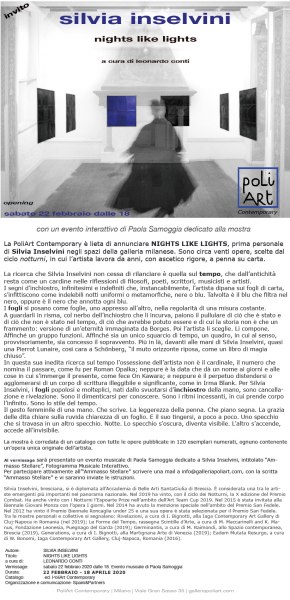 SILVIA INSELVINI nights like lights a cura di Leonardo Conti