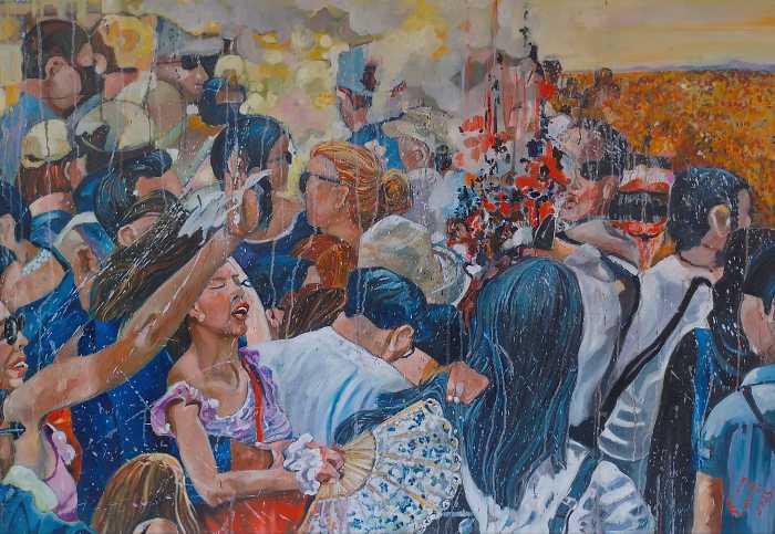 Il progetto espositivo si concretizza in uno scenario in cui si incrociano caoticamente veicoli, masse di persone, percorsi urbani , figure dipinte su grandi tele, frammenti di oggetti più lievi e fluttuanti. Hanno invaso lo spazio, come in un incidente stradale appena avvenuto. Un universo ricco di segni e di simboli che richiama la realtà urbana, la sua alienazione e precarietà.