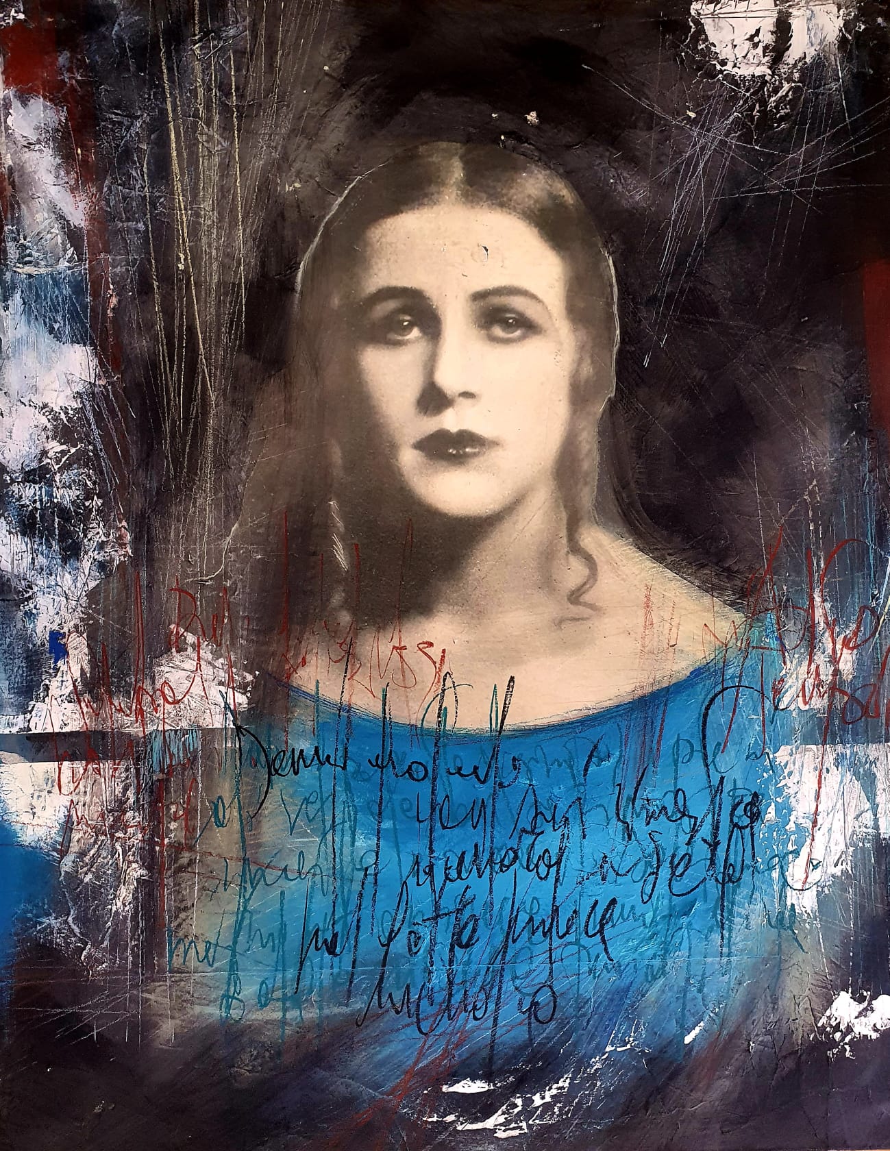Simona Gasperini crea suggestivi collage mix media dedicati, non di rado, a donne che attraverso la loro arte hanno portato un cambiamento positivo nel mondo: cerca di comprenderne lo spirito, di entrare nella loro vita, nel loro sentire, non limitandosi a rappresentarle formalmente, ma anzi cercando di creare immagini che ne evochino l’essenza.