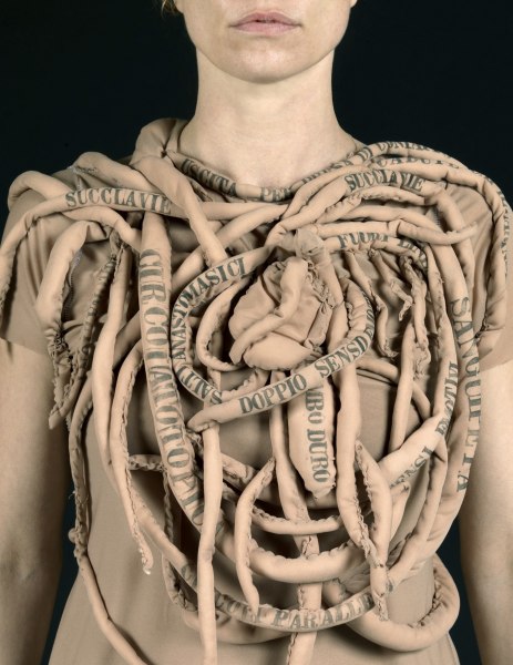 Vestimenti raccoglierà un’ampia selezione di sculture-abito dell’artista. Buona parte della produzione di Sissi negli anni si è infatti concentrata sulla realizzazione di abiti, talvolta indossabili, fatti dei più svariati materiali, che l’artista ha sempre inteso e presentato come vere e proprie sculture, anche all’interno di ampie installazioni o di performance, come nella sua prima fondamentale opera Daniela ha perso il treno (1999). Si tratta di un grande corpus di lavori in grado di coprire venti anni di carriera e di approfondire uno degli elementi cardine della sua poetica.