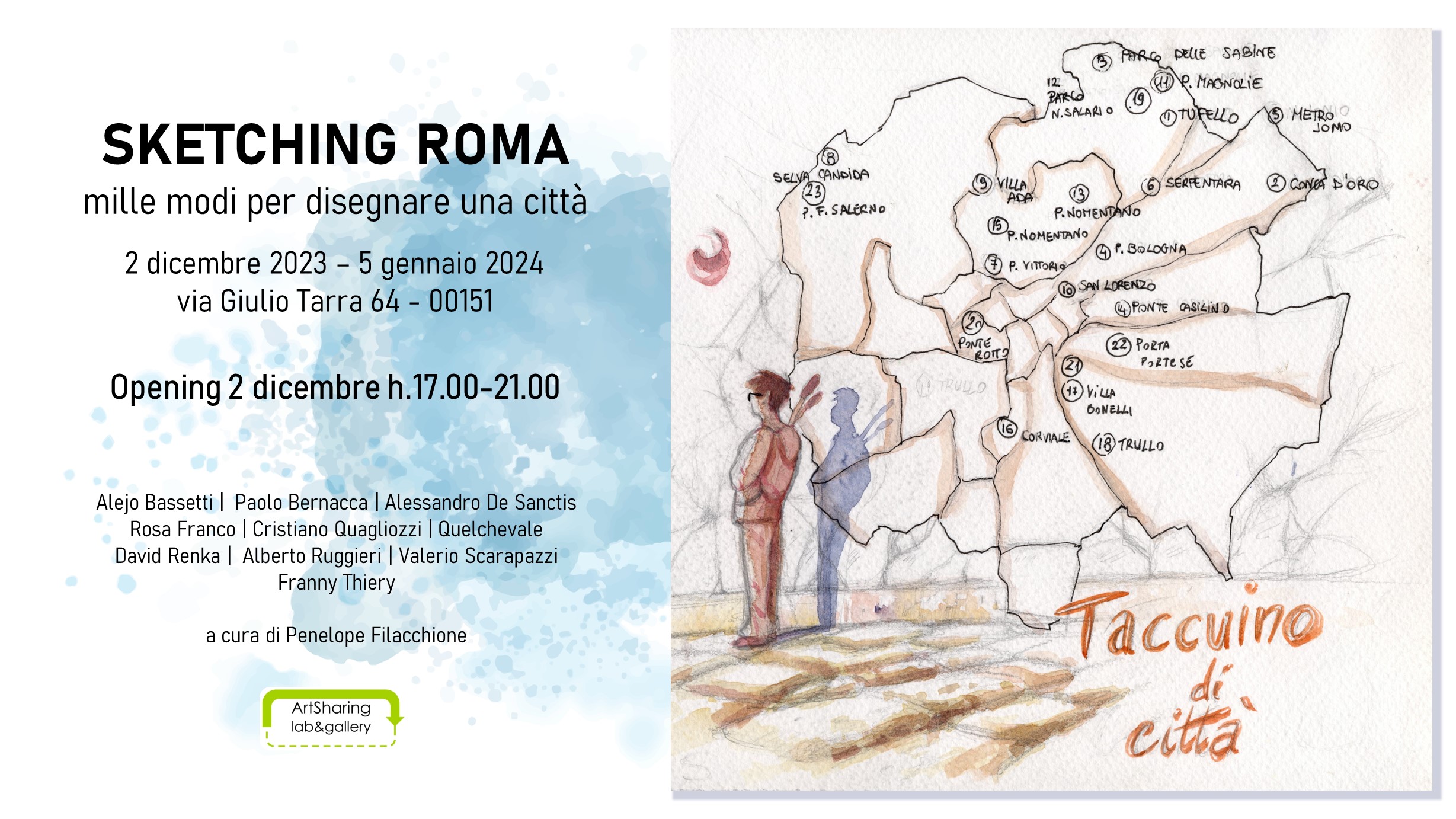 Sito web: https://artsharingroma.it/project/sketching-roma-mille-modi-per-disegnare-una-citta-mostra-2-dicembre-2023-5-gennaio-2024/