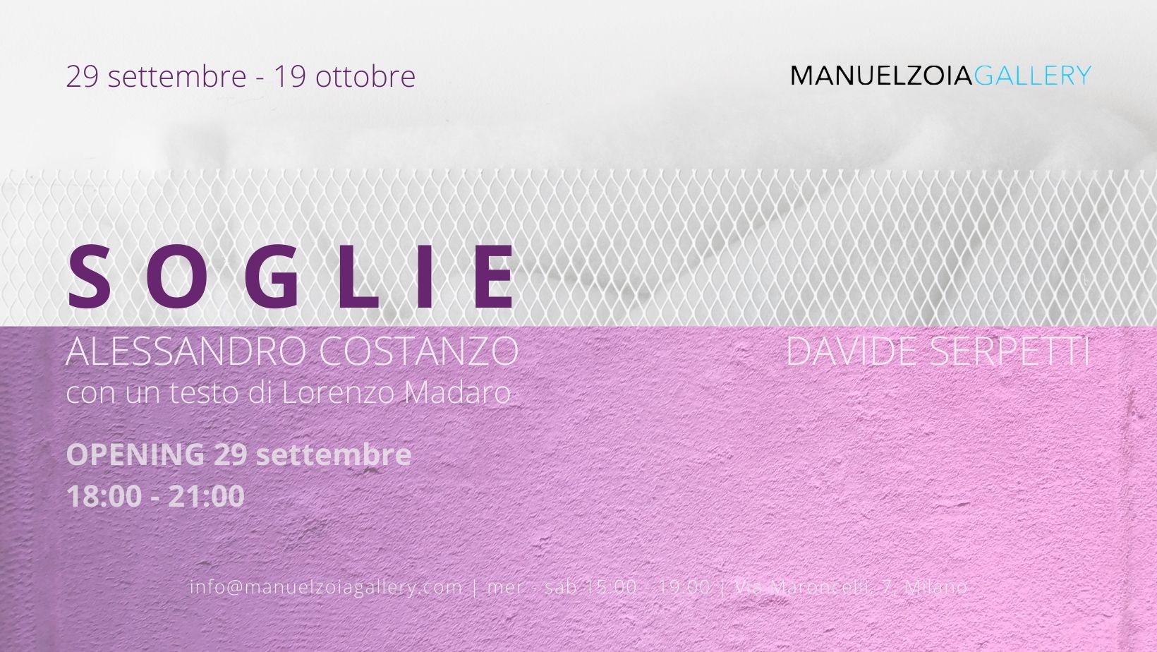 SOGLIE: un dialogo tra gli artisti Alessandro Costanzo e Davide Serpetti, accompagnato da un testo di Lorenzo Madaro.
