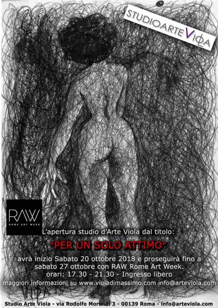 Lo Studio d'Arte Viola dal 20 al 27 ottobre 2018 aprirà nuovamente per le giornate dal titolo: "Per un solo attimo" assieme a RAW, Rome Art Week. Orari: 17:30-21:30.