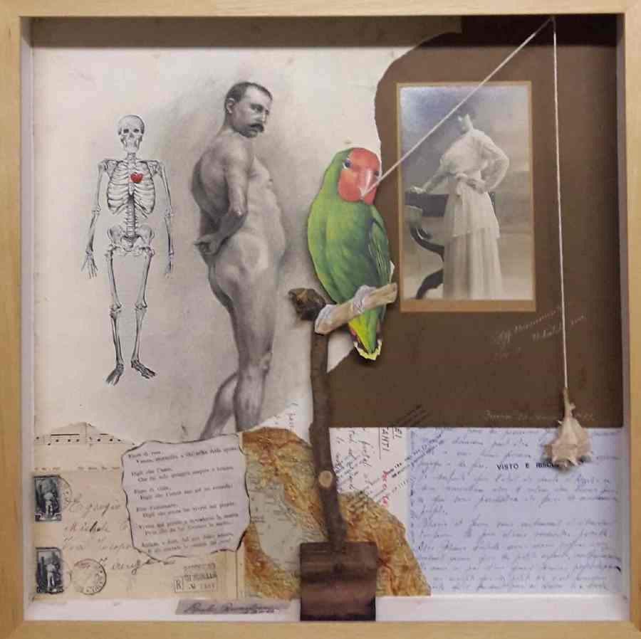 “Paolo Quaglierini, nasce a Rosignano Marittimo (LI), dove vive e lavora. Fondamentale “la lunga esperienza di restauratore e doratore” dove acquisisce competenze e manualità, ma anche suggestioni direttamente dalla storia, poi consacrate ad un processo creativo che, dopo la pittura nel solco della “tradizione labronica, figurativa ed allegorica”, si trasforma in un proprio linguaggio pop, attraverso “vecchi mobili reinterpretai, oggetti di uso comune rivisti e manipolati. “Nel 2014 lo studio appassionato dell’artista americano Joseph Cornell spinge Paolo Quaglierini in una direzione ancora più innovativa: la realizzazione di piccole scatole magiche, dove soggetti estranei dialogano fra loro a riformare nuovi poetici mondi”.