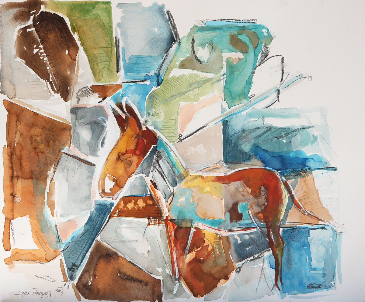 Le opere di Sophia Auersperg e Sira Dingi, stilisticamente tanto distanti tra loro, sono alimentate dalla radice del comune desiderio delle artiste di instaurare un rapporto interattivo con lo spettatore: mentre l’una va in cerca di un’intima consonanza che ne stimoli l’immaginazione e ne alimenti i sogni, l’altra apre un’avvincente sfida intellettuale risvegliandone lo spirito investigativo e giocoso. Così, la mostra ci conduce in una straordinaria esplorazione interspaziale alla scoperta degli universi composti di segni, zodiacali e pittorici, immaginati dalle artiste. Uno lirico e l’altro ironico, questi appaiono incredibilmente diversi, ma si trovano a correre inaspettatamente paralleli in questa occasione, convergendo nella stessa dimensione spazio-temporale dei vicoletti ingarbugliati della città di Bologna. In questo luogo unico, caro ad entrambe e sempre animato da sorprendenti incontri creativi e fecondi, assistiamo all’apertura di un dialogo tra diverse culture ed emisferi geografici, uno scambio che si realizza nel solco di una linea immaginaria tesa tra Buenos Aires e Bologna. Percorrendo questo itinerario con curve inattese, ci muoviamo tra le costellazioni di segni tracciate su tela dalle artiste. Da un lato, Auersperg ci lascia immergere nelle suggestioni raccolte nel corso dei suoi viaggi, trasportandoci nel proprio mondo onirico fatto di impressioni e ricordi e animato da creature e paesaggi mentali; dall’altro, Dingi cattura la nostra attenzione con i frutti stravaganti del suo divertissement creativo, tutto giocato sulla dissacrante ma affettuosa rivisitazione delle opere dei maestri del ‘900 in una prospettiva inedita e bizzarra. Giulia Villari