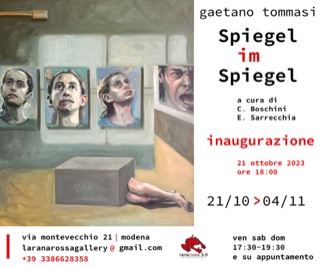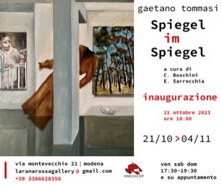 ‘Spiegel im Spiegel’: specchio nello specchio; già il titolo di questa personale di Gaetano Tommasi rappresenta una chiara indicazione di intenti. L’artista propone la sua produzione più recente, che ha preso vita in un periodo di importanti e personali elaborazioni emotive, nate all’esigenza di analizzare e sublimare il dolore dovuto alla perdita di presenze importanti. Ecco che la realtà, allora, si presenta nella sua crudezza e si riflette, in un gioco di specchi, come déjà-vu che non hanno soltanto il sapore del ricordo, ma che assumono anche il ruolo di prospettive immobili, eppure votate al futuro. La poliedrica realtà del nostro vissuto si riflette, specchio nello specchio, nelle concatenazioni visive create dall’artista, creando legami assoluti e silenziosi con il nostro e il suo circostante; e la moltiplicata offerta di immagini pone lo spettatore nel privilegio della contemplazione. Come sempre, il riflesso sta nella nostra mente.