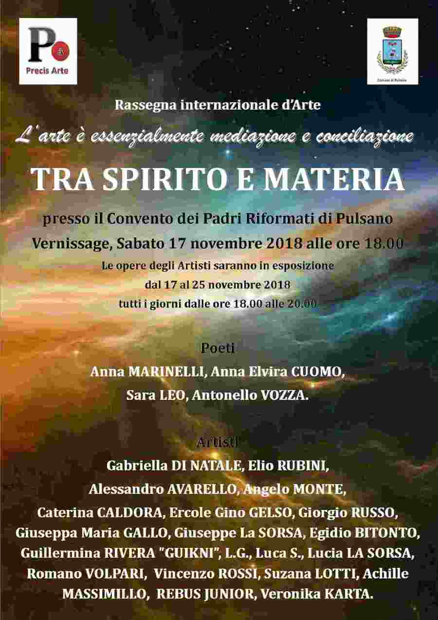 Sabato 17 novembre 2018, alle ore 18,00, presso il Convento dei Padri Riformati di Pulsano sarà inaugurata la rassegna d’arte contemporanea “Tra Spirito e Materia”.