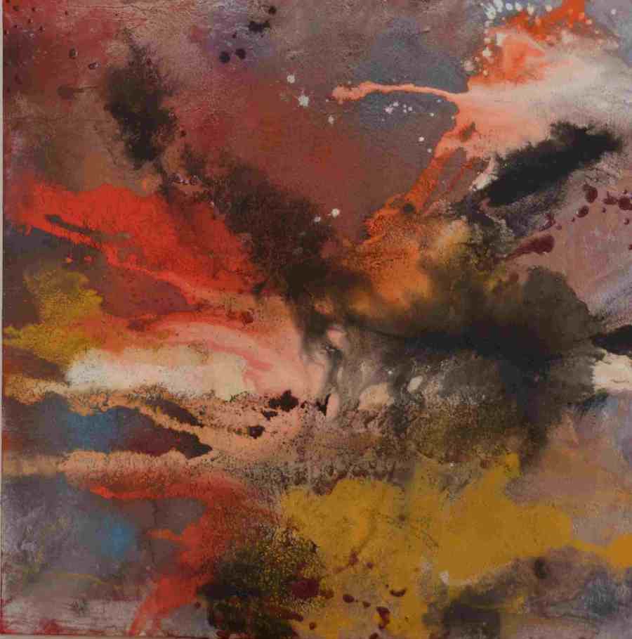 Possiamo scorgere le nuvole, in un vorticoso cielo infiammato, ove il nero prepondera: un abito da indossare, quale vessillo inteso come la penna degli uccelli, per volare oltre ogni convenzione.