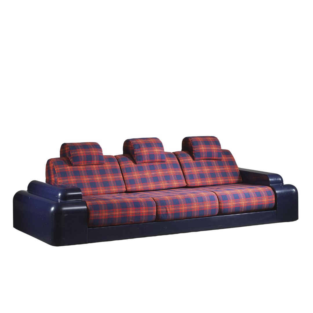 A spiccare tra le proposte è l’ampio divano modello Boa di Fernando e Humberto Campana prodotto da Edra, un nido intrecciato in poliuretano rivestito in velluto nei toni del verde di più di tre metri. Ad affiancarlo, il divano modello Visir di Ettore Sottsass – prodotto da Poltronova nel 1970 – in fibra di vetro nei toni del blu imbottito e rivestito in tessuto, all’asta insieme ai vasi in ceramica Yantra Y22 in rosso e Yantra Y17 in viola progettati dallo stesso designer.
