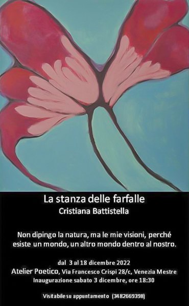 Sabato 3 dicembre alle 18:30 inaugura la personale "La Stanza delle Farfalle". Atelier Poetico, Via Crispi 28/c a Venezia Mestre.