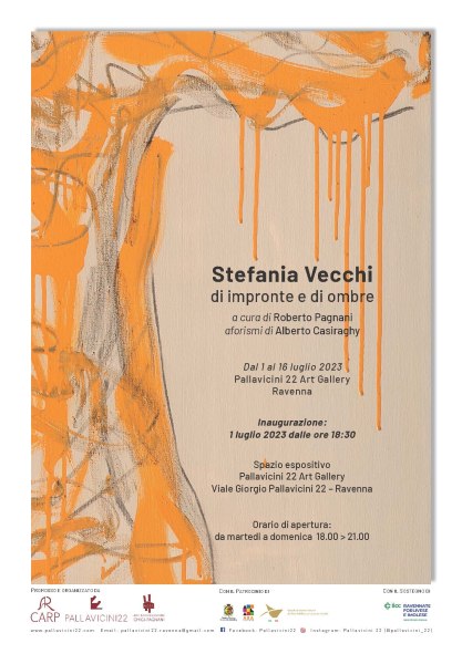 Sabato 1 luglio 2023 dalle ore 18:30 presso lo spazio espositivo Pallavicini22 Art Gallery in Viale Giorgio Pallavicini 22 a Ravenna, si inaugura “Di impronte e di ombre”. La personale di Stefania Vecchi, a cura di Roberto Pagnani e con testo critico di quest’ultimo a catalogo, rimarrà allestita fino a domenica 16 luglio e sarà aperta al pubblico dal martedì alla domenica dalle 18 alle 21.