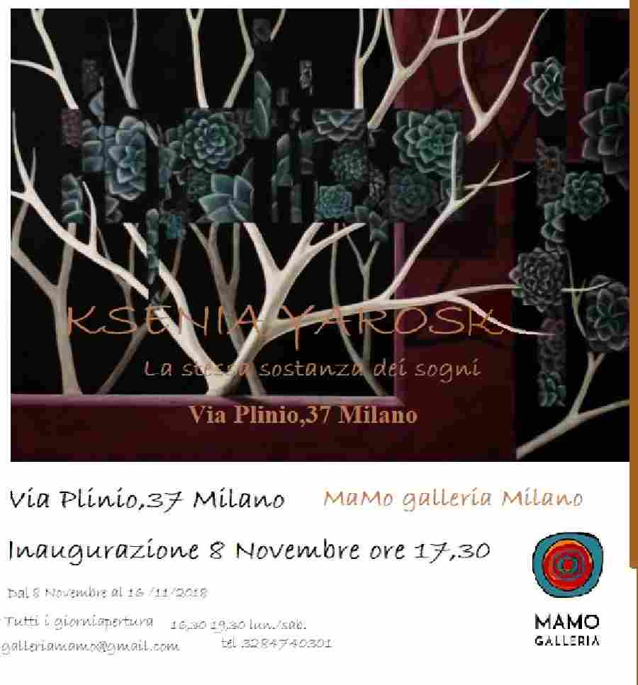 Nature morte, soggetti inanimati, piante, particolari della sua vita si collocano all’interno di uno spazio pittorico ricco di bruni, dove emerge improvviso il colore verde vescica acido e squillante, che contrasta con tutte le gradazioni dei bruno -nerastro fiamminghi, chiaroscurato e immerso in uno sfondo notturno. La pittura di ksenia si sostanzia di sogni; piccoli frammenti di immagini si raccontano attraverso un segno che predilige spazi e memorie onirici, capaci di trasformare i messaggi segreti del subconscio in pittura. Surrealismo e Metafisica si incontrano per ispirare l’artista verso una nuova realtà; oggetti appartenenti al quotidiano si affiancano a piante o manichini, giostre, giochi e nature morte si animano come in un teatro dell’assurdo popolato da strani oggetti appartenenti al passato, alla memoria storica, dominati dagli spostamenti di senso e accostamenti inconsueti.