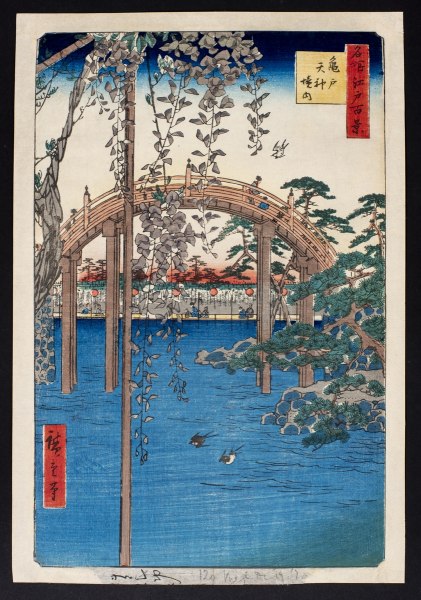Ukiyo-e, termine che significa letteralmente “immagini del mondo fluttuante”, descrive il genere artistico, fiorito tra il XVII e XIX secolo, che aveva inizialmente una connotazione edonistica associata ai momenti piacevoli che gli abitanti delle città trascorrevano dedicandosi a piaceri transitori della vita, e in quest’ottica la raffigurazione del paesaggio era rilegata alla funzione di sfondo ai personaggi ritratti.