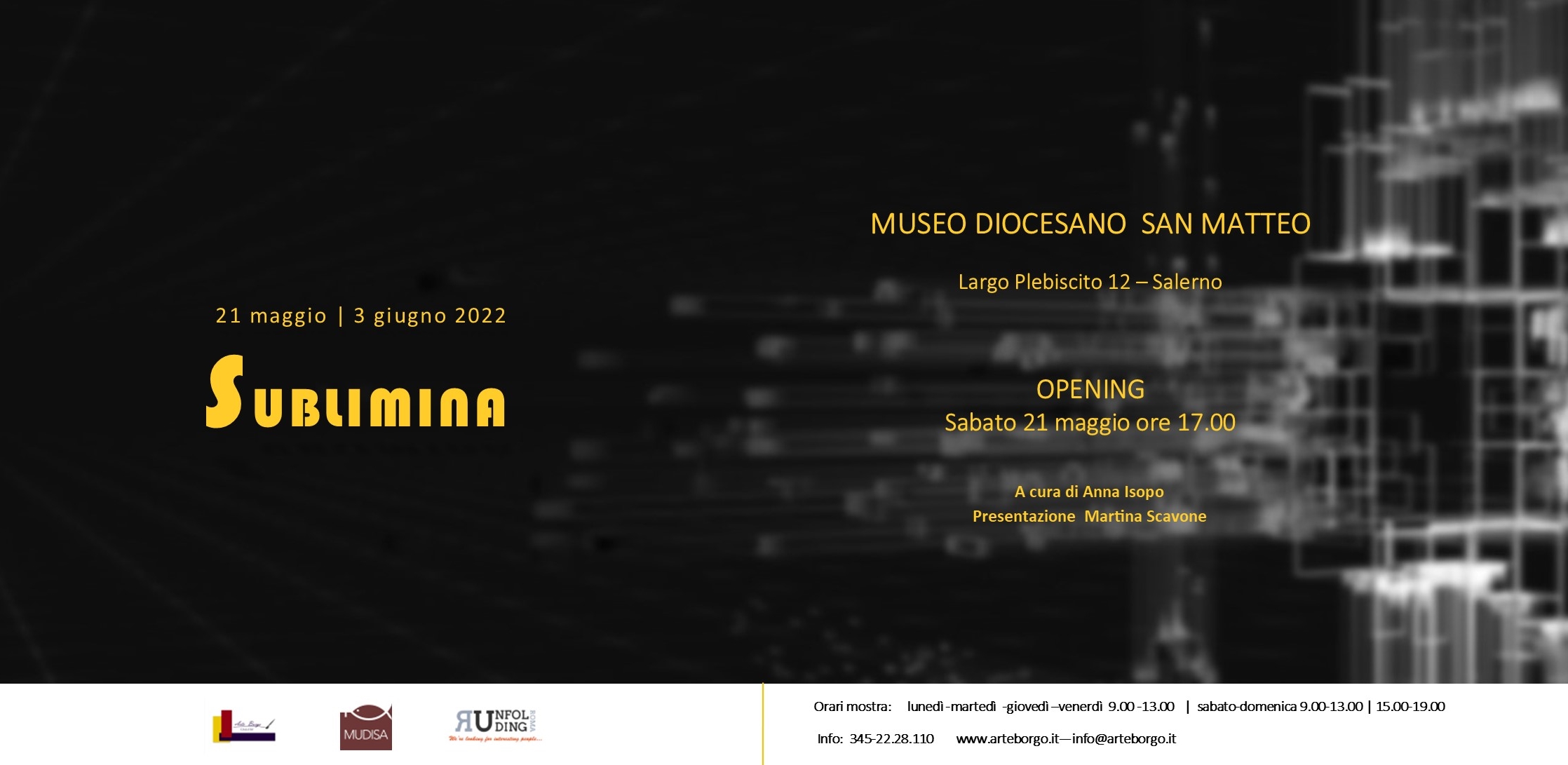 SUBLIMINA è il titolo emblematico della mostra a cura di Anna Isopo di Arte Borgo Gallery ospitata presso il Museo Diocesano S. Matteo di Salerno dal 21 maggio al 3 giugno.