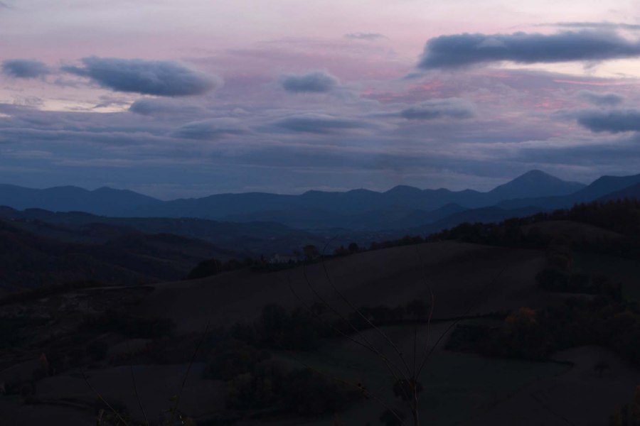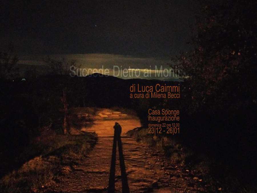 Succede Dietro ai Monti, personale di Luca Caimmi a cura di Milena Becci, è il proseguo di un percorso e di uno studio approfondito e soggettivo sul paesaggio circostante la Casa iniziato ormai un anno fa a seguito di una residenza a cui parteciparono alcuni artisti interessati a dipingere en plein air, accolti dal territorio marchigiano. Tutto iniziò a Montesecco, piccola frazione del Comune di Pergola, preziosissimo angolo da cui è possibile godere di uno straordinario panorama, ed è proprio lì che Luca Caimmi torna per realizzare il suo progetto a Casa Sponge.