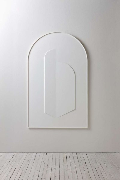 Si potrebbe parlare di uno spazio nello spazio, dove il primo, quello contemporaneo, produce nei confronti del secondo, lo spazio storico che lo contiene, una sospensione silenziosa, ritmata dall’articolazione delle opere a parete, grandi superfici bianche dove affiorano dalla carta, stampata a secco, le trame geometriche di ulteriori spazi possibili. I lavori a carattere installativo e scultoreo, composti di pochi essenziali elementi, generano a loro volta linee di tensione nell’ambiente dovute al preciso quanto delicato equilibrio delle parti che li compongono. L’acuminarsi delle estremità degli oggetti esposti, vere e proprie linee-dardo, richiede volutamente allo spettatore un aumento del suo livello di attenzione.