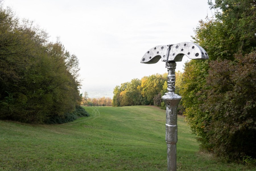 Durante i sopralluoghi eseguiti nel 2022 in occasione di Sconfinamenti, le artiste sono rimaste colpite anche dalla presenza di piccole “edicole” votive, tempietti semplici e pieni di grazia che adornano le campagne emiliane, spesso collocate in punti ben definiti: luoghi di sosta, porte di accesso a città, paesi e borghi rurali, incroci di strade, sentieri campestri o montani. Partendo da questa suggestione, Caterina Morigi e Giulia Poppi hanno immaginato di attuare una sorta di “agopuntura” del territorio, andando a collocare le opere in punti strategici. Da questa suggestione deriva la struttura affusolata de Le adamantine, che sembrano “pungere” il suolo, conficcate a terra da una misteriosa forza invisibile. La presenza delle sculture/installazioni si riallaccia, quindi, anche a un’idea di spiritualità insita nel rapporto tra il fruitore e il contesto che le accoglie: le opere richiamano il pubblico a raccolta, come avveniva in prossimità delle “edicole” votive durante le cerimonie sacre, e suggeriscono punti di osservazione particolari, dalle potenziali sorprese, per esempio luoghi di valore storico-artistico ancora poco noti.