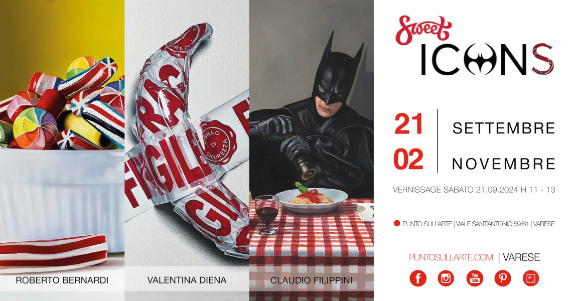 Roberto Bernardi, artista di fama mondiale, espone le sue superlative opere in occasione della mostra tripersonale SWEET ICONS da PUNTO SULL’ARTE. Accanto a lui espongono gli artisti Valentina Diena e Claudio Filippini, entrambi autori di raffinate opere dalla forte carica concettuale e dall’eccezionale esecuzione tecnica. Il VERNISSAGE di SWEET ICONS si terrà SABATO 21 SETTEMBRE 2024 dalle 11 alle 13 presso la sede principale di PUNTO SULL’ARTE in Viale Sant’Antonio 59/61 a Varese (Casbeno). Gli artisti saranno presenti.