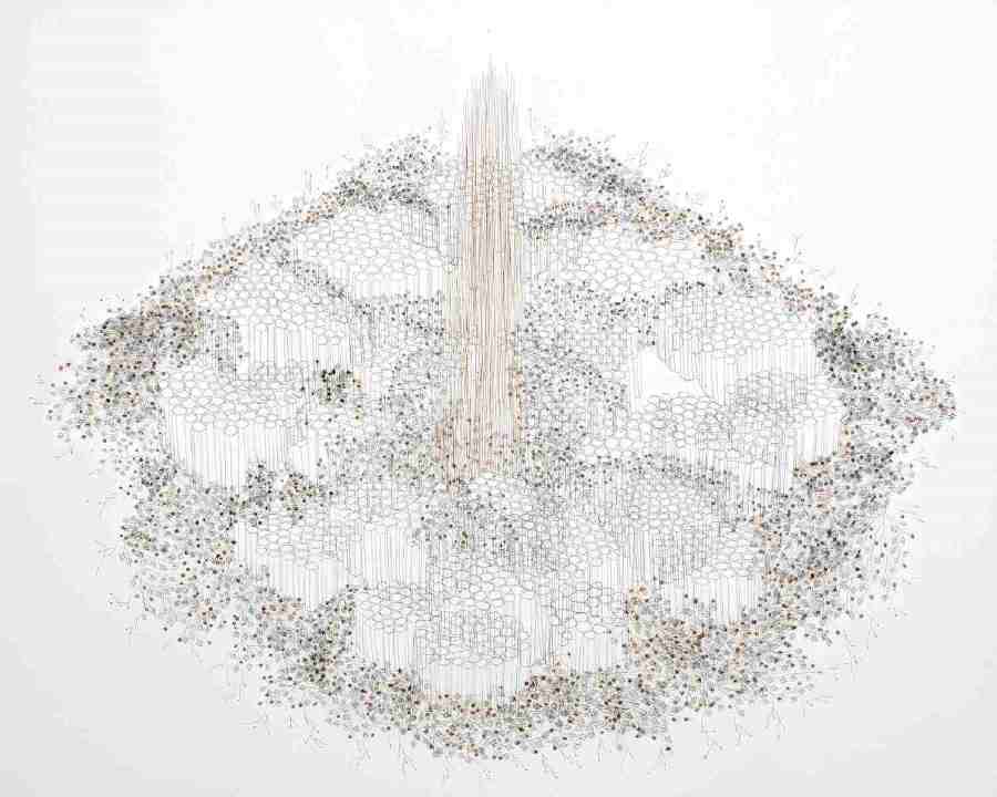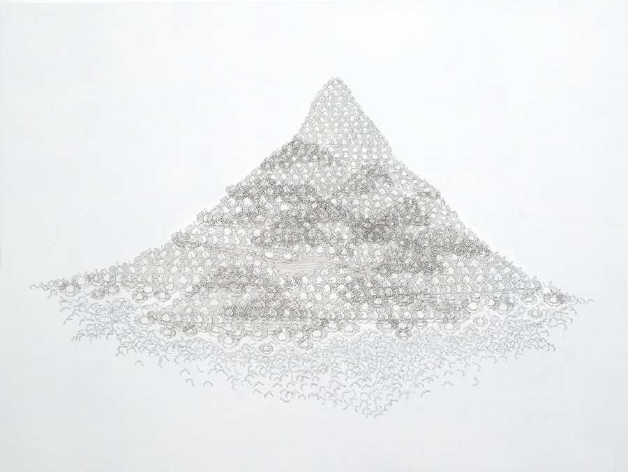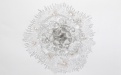 In mostra, un nuovo corpus di opere, che si avvalgono del disegno con l’utilizzo di matite, capelli e carta applicata, scopre, quasi in una pratica di automatismo, una dimensionalità ulteriore, effimera ma vibratile. Il tratto si associa alla sovrapposizione di livelli che creano varchi percettivi nel richiamare una nuova prospettiva metafisica. Ferioli, ispirandosi al disegno scientifico di natura, sembra descrivere un itinerario di migrazione da un atlante a un’evocazione panica nel rispondere a un impellente richiamo onirico. Il bianco accoglie colonne basaltiche, germinazioni vegetali, fiori, pesci e crostacei nella reminiscenza costante di iconografie islandesi, atlantiche e vulcaniche. La mostra si conclude con un’installazione ambientale composta da sculture realizzate con ossa di pesce atlantico. Ferioli interviene sul materiale di origine animale, scarto di lavorazione della pesca, conferendogli forma vegetale. I fiori, che si generano quasi spontaneamente, rispettano nel processo scultoreo la struttura ad incastro esatto che la materia organica offre, sfruttando cavità e protrusioni anatomiche. L’esito delle sculture ribadisce la profonda e metafisica sapienza innata nella natura, che l’artista indaga con un lavoro paziente e meticoloso. Ogni fiore è dunque un fossile che cristallizza in forme plastiche le geometrie seriali e i principi matematici sottesi ai sistemi biologici.