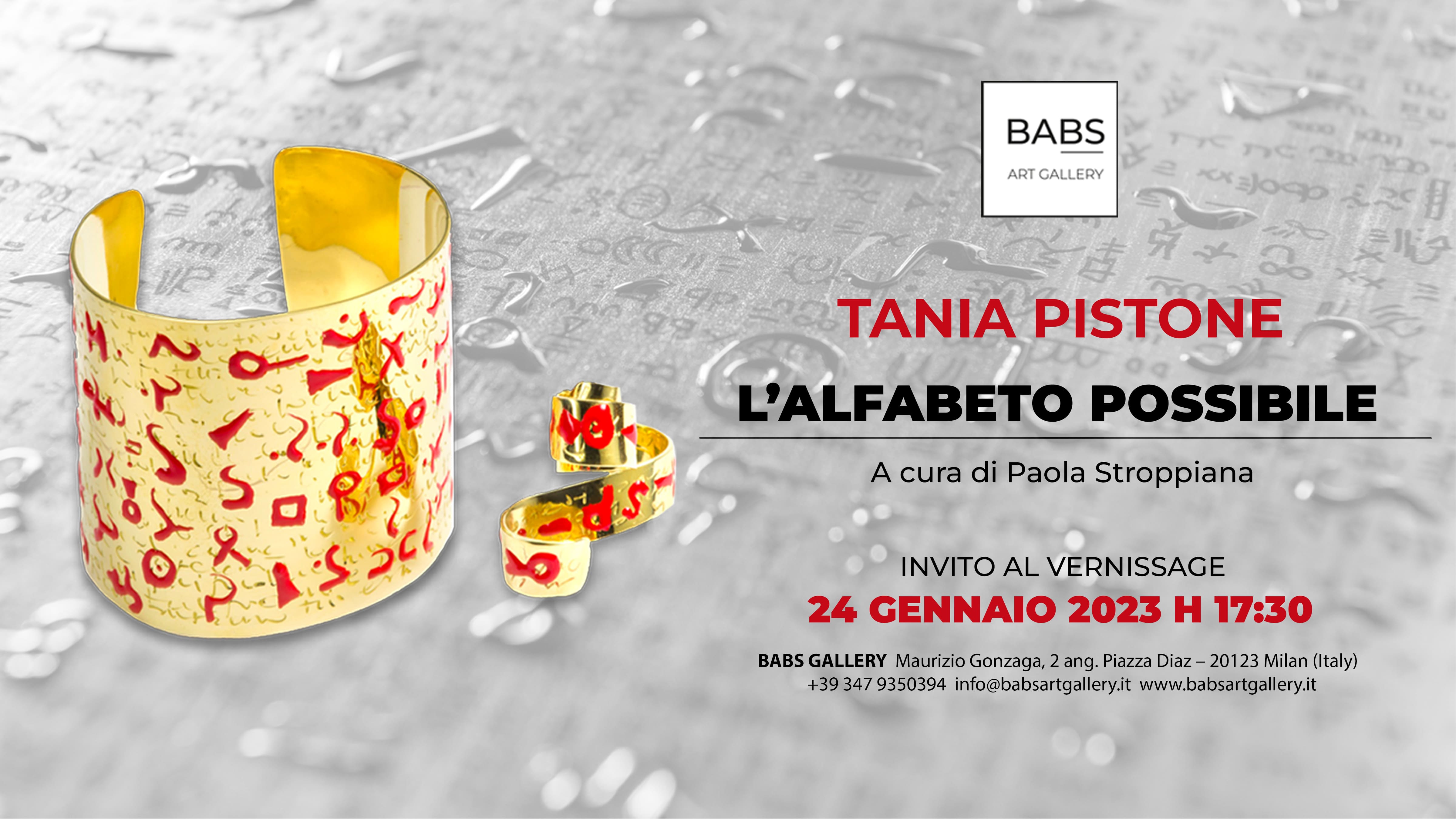 BABS è lieta di ospitare dal 24 gennaio 2023 la personale di Tania Pistone, L’alfabeto possibile, a cura di Paola Stroppiana: l’artista presenta gioielli e dipinti, molti dei quali inediti, posti in serrato dialogo.