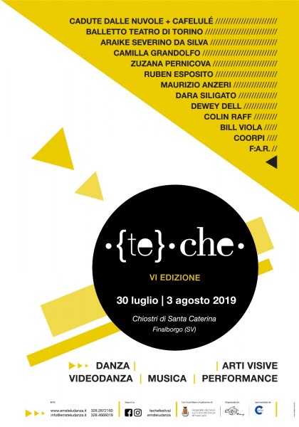 Cinque giorni di teatro danza, danza contemporanea, arti visive, musica, workshop e cinema. {Te}che Festival volge lo sguardo ai giovani artisti emergenti, alla valorizzazione delle eccellenze artistiche del territorio ligure, al panorama contemporaneo internazionale, alle avanguardie e soprattutto al patrimonio storico, architettonico e culturale. Il tema portante di questa edizione ruota attorno allo “scoprire”: il filo sottile della scoperta attraversa gli spettacoli come fossero cuciti assieme, svelando un’ immagine molto più ampia, dal remoto e antico al moderno e tecnologico. Scoprire, togliere ciò che serve a coprire, a riparare, a nascondere alla vista. Lasciare scoperto, rivelare ciò che si voleva tenere nascosto o riservato; scoprire significa meravigliarsi di fronte alla complessità delle forme della vita e la capacità di meravigliarsi è la caratteristica rivelatrice dell’essere umano.