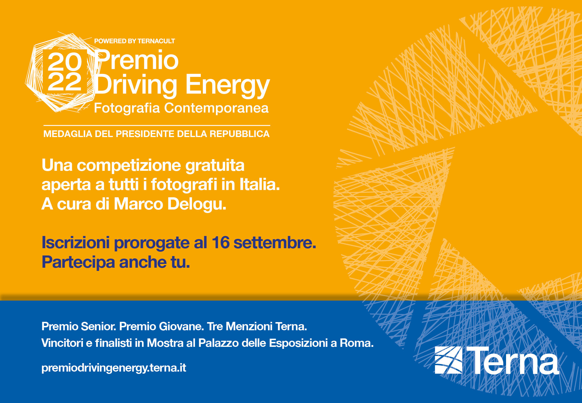 Il rilevante e qualificato numero di iscrizioni al Premio ha indotto il gestore della rete elettrica nazionale a prorogarne il termine, inizialmente previsto al 31 agosto, per permettere la più ampia partecipazione possibile di fotografi, dilettanti e professionisti, registrandosi sulla piattaforma premiodrivingenergy.terna.it.