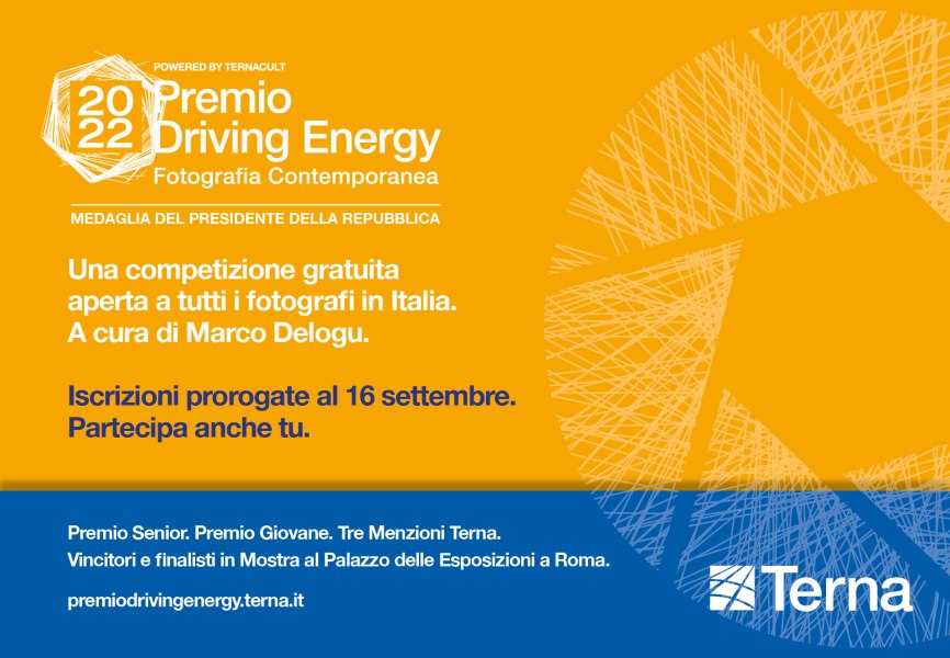Fino al 16 settembre è possibile iscriversi gratuitamente al “Premio Driving Energy 2022 – Fotografia Contemporanea”, il concorso lanciato da Terna al fine di promuovere lo sviluppo culturale del Paese e dei nuovi talenti del settore.