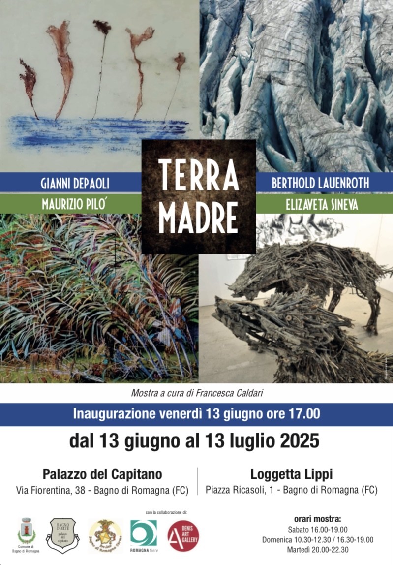 Ospitano come primo appuntamento di Bagno d’Arte 2025 la mostra TerraMadre, opere di Gianni Depaoli, Berthold Lauenroth, Maurizio Pilò ed Elizaveta Sineva a confronto con le fotografie di Isacco Emiliani.