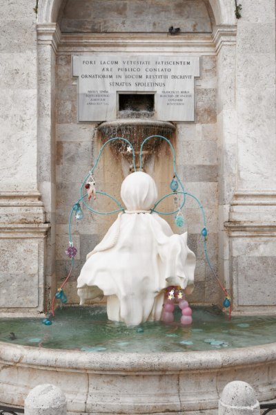 L'opera di Shani – raffigurazione di un enigmatico fantasma, adornato di lacrime e portafortuna – era stata originariamente collocata nella fontana pubblica di Piazza Mercato a Spoleto. L'installazione si ispira alla ricerca dell'artista su psichedelia, femminismo e mito e fa parte del progetto The Neon Hieroglyph, una serie di riflessioni poetiche sulla storia dell' ergot, il fungo da cui deriva l'LSD. Prima della molitura industriale, l'ergot cresceva talvolta nei raccolti di grano in tutta Europa. In The Neon Hieroglyph, le storie dell’ergot e dei fantasmi che esso ha ispirato creano apparizioni di ansie apocalittiche e aspirazioni utopiche: il dolore e la discordia circolano attraverso la stessa rete interconnessa dell’estasi e dell’empatia.