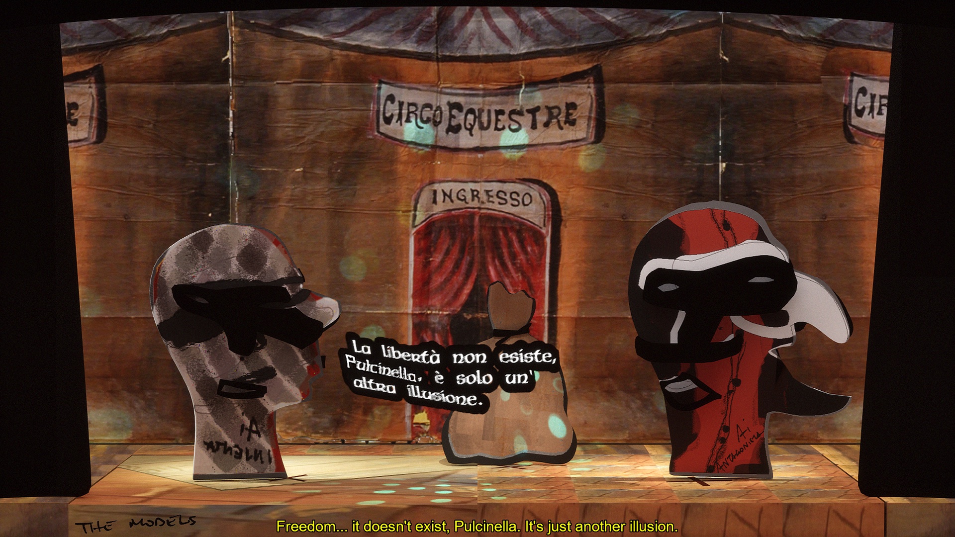 The Models è un’installazione interattiva sviluppata dal duo londinese dmstfctn durante una residenza artistica presso il Tecnopolo Manifattura Data Valley Hub, a partire da una sfida lanciata da Sineglossa sul tema delle fake news, che si riaccende in questi giorni con le dichiarazioni di Meta, intenzionata ad eliminare i controlli di fact checking dalle sue piattaforme. È possibile combattere le teorie complottiste con la meraviglia prodotta dagli artisti? La sfida si ispira alla tesi, contenuta nel libro Q di complotto di Wu Ming, che queste fantasie si diffondano perché l’essere umano tende ad appassionarsi di più alle storie che suscitano stupore, rispetto ai testi o ai report scientifici. Da qui, dmstfctn ha deciso di combinare meraviglia e verità attraverso un'installazione che, recuperando il patrimonio culturale dei Musei della Regione Emilia-Romagna porta in scena maschere digitali animate in 3D engine, capaci di improvvisare una serie infinita di sketch teatrali nello stile della Commedia dell'Arte. A guidarle sono modelli di intelligenza artificiale perfezionati dagli artisti utilizzando il Supercomputer Leonardo - modelli che, con testi ispirati agli archetipi classici, danno vita a personaggi che confabulano, inventano verità, ripetono voci o commettono errori banali. Personaggi che esibiscono la tendenza dei Large Language Models a mostrare comportamenti a volte menzogneri e antagonisti, altre volte fin troppo amichevoli o servili. Le maschere, dotate di voce grazie a tecnologia text-to-audio, reagiscono agli input del pubblico, che attraverso il proprio smartphone avrà la possibilità di interagire con l’opera introducendo oggetti scenici che rappresentano superstizioni e teorie del complotto per stimolare e guidare l'improvvisazione.