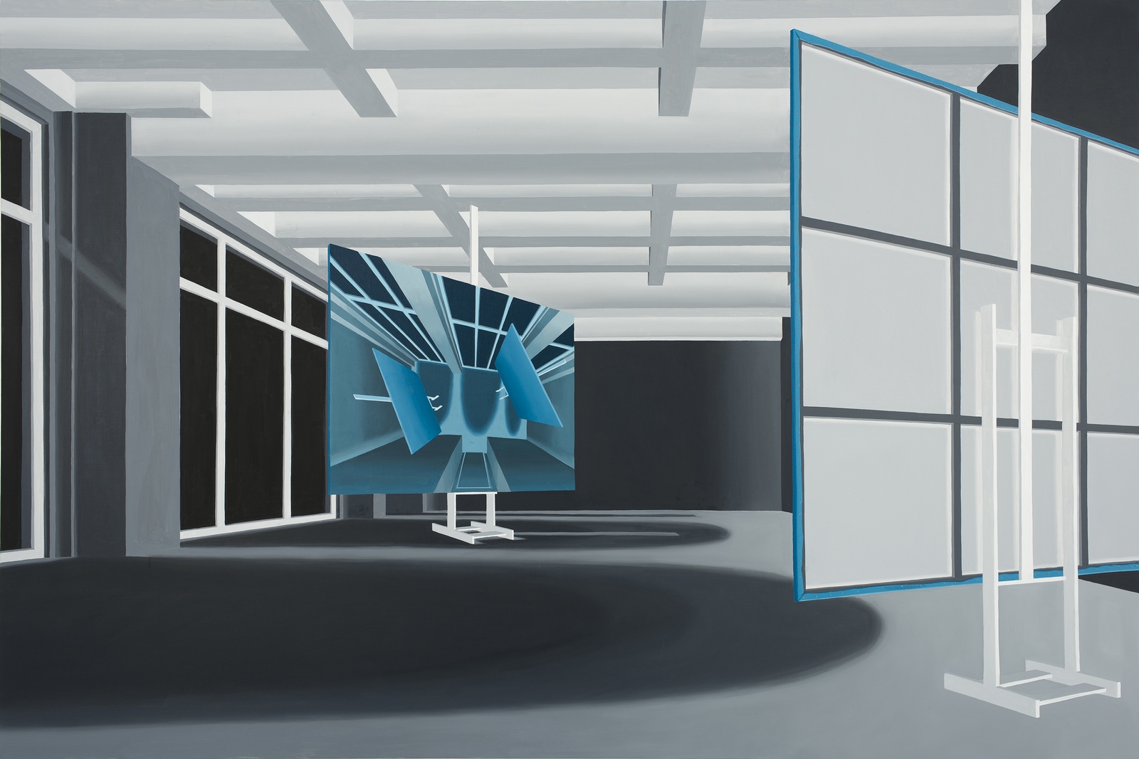 È tutto un gioco di percezione e di prospettiva come si intuisce dall’opera che di questa esposizione è il “manifesto”: Besucherandrang (serie Am Horizont, 2015). Il grande dipinto mostra la stessa sezione architettonica ripetuta tre volte, fedele a sé stessa ma mai uguale agli occhi dello spettatore.
