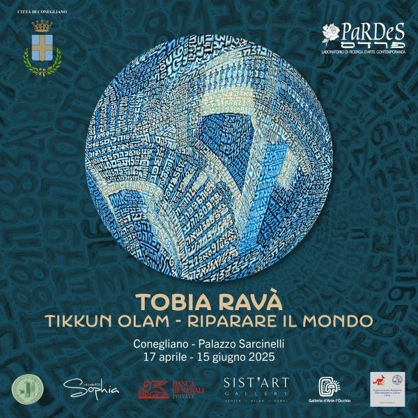 Tikkun Olam (Riparare il mondo). Mostra antologica di Tobia Ravà, a cura di Lorena Gava. Palazzo Sarcinelli Conegliano (TV). Inaugurazione mercoledì 16 aprile ore 18.30. Aperta dal 16 aprile al 15 giugno 2025. Orari di apertura: giovedì-venerdì: 15.00-19.30, sabato-domenica e festivi: 11.00-19.30