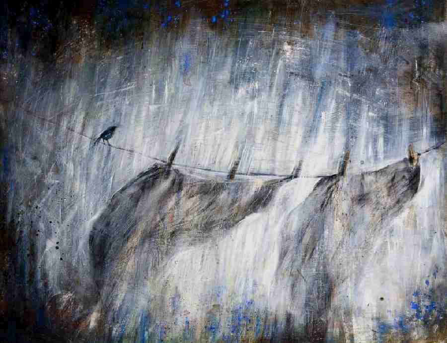 Una strada di campagna, uno scorcio urbano da una prospettiva insolita, una figura che cammina con una valigia, sono alcuni degli attimi descritti in punta di pennello da Mariarosaria Stigliano, immagini di un istante sospeso che raccontano il vento.
