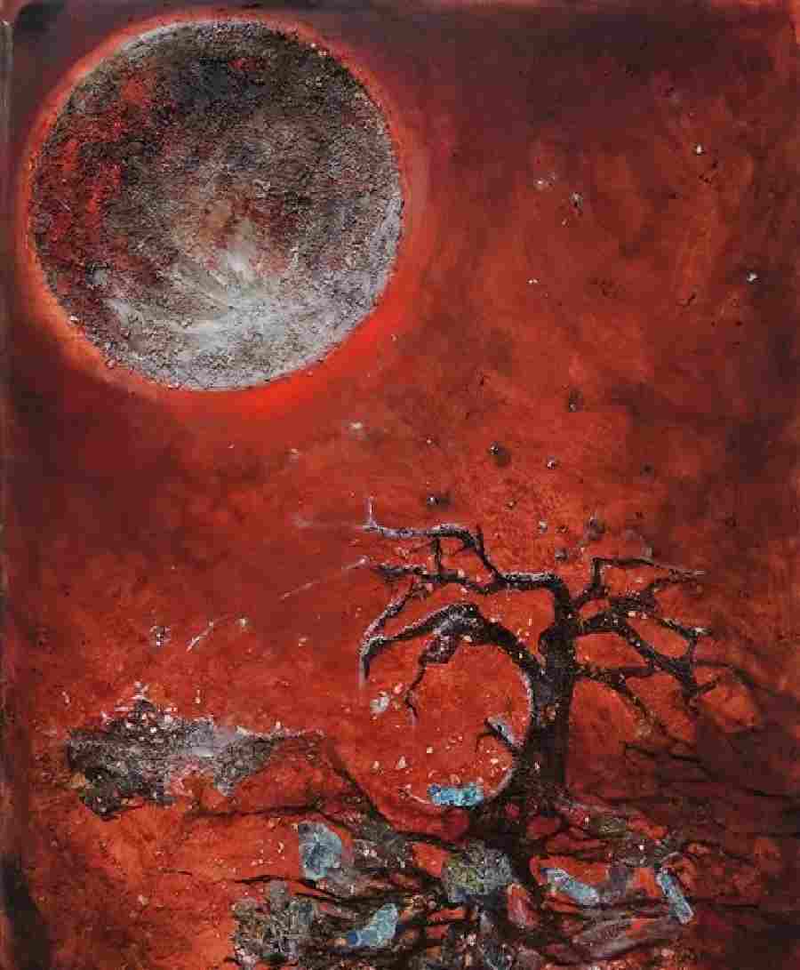 La recente produzione pittorica di Barbara Nicoletto (Padova, 1968) si differenzia dalle precedenti ricerche condotte dall’artista per l’accentuato carattere materico. Il colore ad olio si sovrappone, infatti, a fondi stratificati, ottenuti con miscele di blu oltremare, ossidi metallici e pomice. Una figurazione che abbraccia corpi umani e animali, lune e pianeti, facendo uso di suggestioni cromatiche che alludono all’ambito onirico per trattare temi connessi all’attualità e al vivere quotidiano.