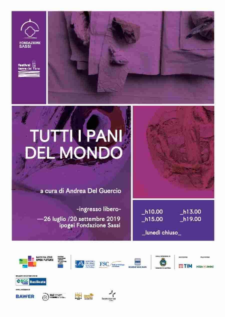 La mostra Tutti i pani del mondo a cura di Andrea B. Del Guercio sarà inaugurata venerdì 26 luglio 2019 negli ipogei della Fondazione Sassi a Matera ed è parte integrante del Festival La Terra del pane.