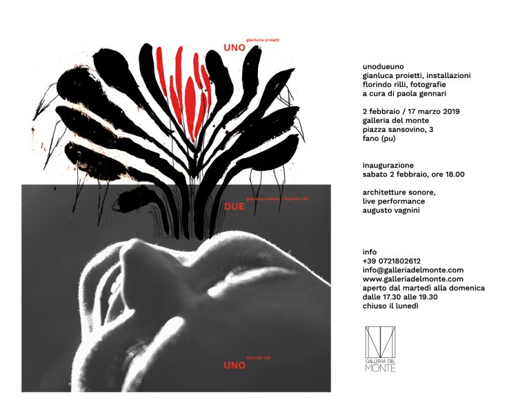 Il titolo è della mostra è unodueuno: nel piano inferiore, vi sono alcune fotografie in bianco e nero di Rilli (uno), nel piano terra, invece, entrambi gli artisti hanno lavorato insieme per generare opere inedite e uniche, (due), ed, infine, al piano primo, sono ospitati disegni ed installazioni di Proietti (uno).