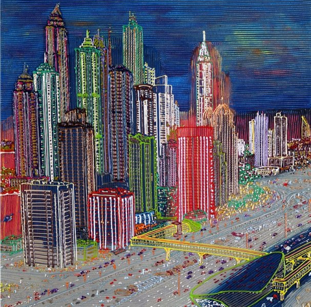 Anche il Maestro Mellone già negli anni ‘70 affronta la rappresentazione di ambienti urbani esuberanti nella sua serie Città-robot (1973-75) dove la città, e tutto ciò che essa rappresenta, si tinge di ambiguità: “Le città del futuro non intendono prefigurare ipotetiche città avveniristiche, ma si pongono come immagine del disordine tecnologico, riscontrabile soprattutto nel presente, e configurando un habitat immaginario in cui si ipotizza la simbiosi dell’uomo e della macchina”. Da sempre l'arte, in ogni sua forma, si intreccia con l'urbanistica, dando vita a un dialogo dinamico che arricchisce l'esperienza umana. La visione di Mellone spesso si tinge di pessimismo e pesantezza nella visione del futuro a lui vicino. Una sorta di vertigine e paura per ciò che vede svilupparsi in quegli anni tumultuosi.