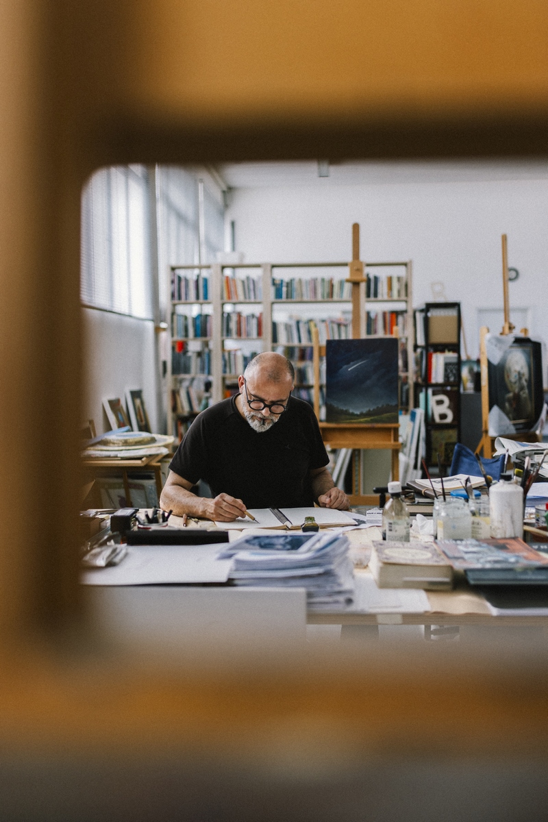 Ciro Palumbo nasce a Zurigo nel 1965. Il suo percorso artistico prende l’avvio dalla poetica della scuola Metafisica di Giorgio de Chirico e Alberto Savinio, per reinventarne tuttavia i fondamenti secondo un’interpretazione personale. Grafico pubblicitario per formazione, fa esperienza in una moderna bottega d’arte, conoscendo alcuni maestri contemporanei che lo invitano ad approfondire la tecnica della pittura a olio con velatura. Inizia la sua attività espositiva nel 1994, e ha al proprio attivo un centinaio di mostre personali in tutta Italia. Nel 2011 ha preso parte alla 54. Esposizione Internazionale d’Arte - La Biennale di Venezia, padiglione Piemonte. Nel 2022 ha partecipato con Identity Collective all’evento An unknown that does not terrify / L’ignoto che non fa paura, durante la 59. Esposizione Nazionale d’Arte - La Biennale di Venezia, presso il Padiglione Nazionale Grenada. Tra le esposizioni internazionali sono da segnalare la presenza all’Artexpo di New York, al Context Art Miami e le mostre personali a Providence (USA) e Bellinzona (Svizzera). Alcune sue opere sono presenti all’interno della collezione della Fondazione Credito Bergamasco, alla Civica Galleria d’Arte Moderna G. Sciortino di Monreale (PA), al Museo MACIST di Biella, al Palazzo della Cultura e al MACS di Catania. Negli ultimi anni si è dedicato con successo anche alla scultura in terracotta. Palumbo è stato insignito del Premio Artis Suavitas 2023, con cerimonia di consegna nell’Anfiteatro del Parco Archeologico di Pompei. Vive e lavora a Torino.