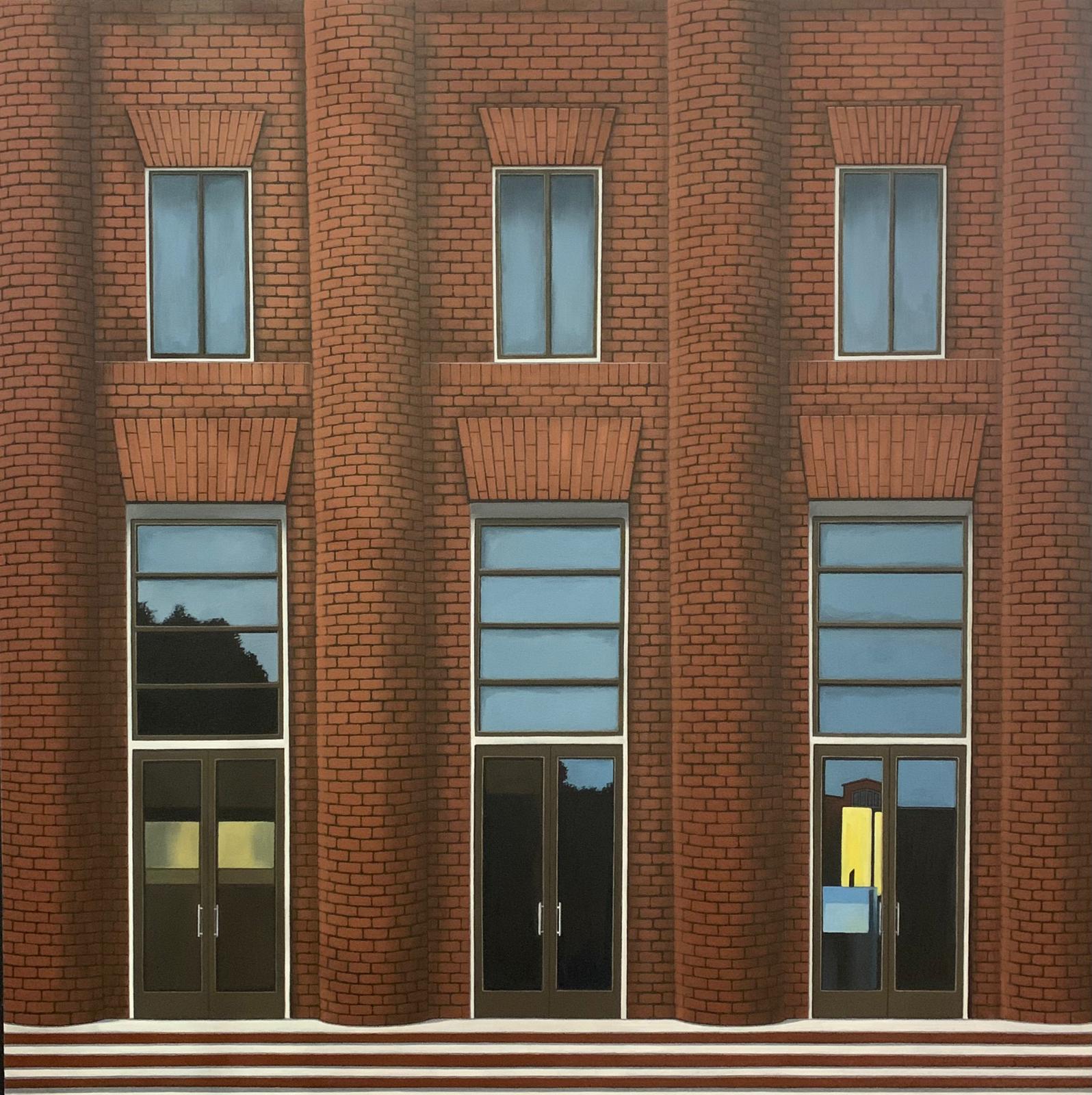 Un ritorno all’ordine lo imprime MARTA MEZYNSKA (1981), polacca trapiantata a Milano con la passione per le geometrie e per il rigore. Sulle sue tele la città si racconta solo ed esclusivamente attraverso le facciate, in primi piani ravvicinati che escludono il cielo e lo spazio circostante. La sua preferenza naturalmente va alle architetture razionaliste, che racconta in punta di pennello, mattone dopo mattone, ipnotizzandoci con la precisione della pennellata e con il gioco dei contrappunti cromatici e lasciandoci spesso in bilico tra la certezza della figurazione e la sensazione dell’astratto.