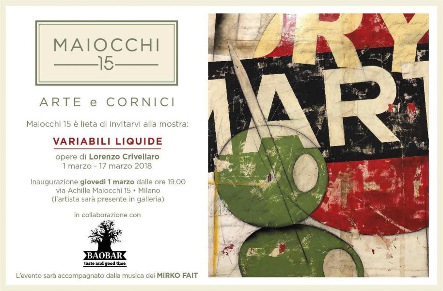 La galleria Maiocchi15 inaugura giovedì 1 marzo, dalle ore 19 in via Maiocchi 15 a Milano, la mostra “Variabili liquide”, esposizione personale delle opere di Lorenzo Crivellaro.