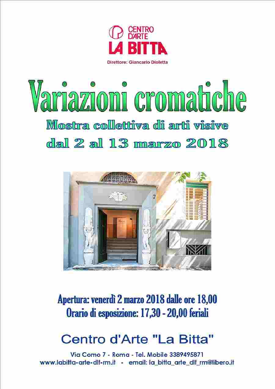 Con la mostra collettiva di arti visive " Variazioni cromatiche " si mettono in evidenza, attraverso le opere artistiche, le immense varietà tonali di luce e colore; è a tema libero, ad ogni forma di espressione e tecnica realizzativa. In quest'occasione si darà ampia scelta all'artista che vorrà esporre le proprie opere pittoriche, scultoree e fotografiche.