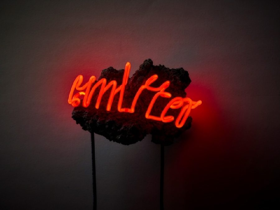 Arthur Duff a tutt’oggi presenta un corpus di opere molto vasto, che si è andato definendo negli ultimi anni e che possiamo suddividere in quattro filoni principali: i lavori con i fili annodati e tesati su telaio, di cui fa parte la serie Black Stars; i ricami su tela mimetica; le proiezioni al laser; i neon e le carte. In mostra saranno esposte quattro di queste tipologie di lavori sufficienti a evidenziare il carattere strumentale della parola e del segno. Nella voluta assenza del carattere semantico l’autore rivela l’interesse rivolto altrove: ad ambiti specifici della fisica e dell’astronomia. La scultura di neon crea una parola palindroma; i ricami su tessuto militare si attengono alla morfologia sottostante; la sagoma della pietra vulcanica determina l’andamento del tubo al neon; l’intreccio di nodi neri di Black Star Fragment ricrea un conglomerato di stelle ormai estinto ma visibile oggi.