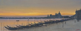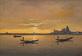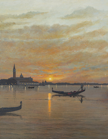Equilibrio e sensibilità caratterizzano i suoi dipinti, nei quali il pittore sa legare molto armoniosamente il linguaggio del passato con le esigenze di linearità di quello moderno. Ne escono - conclude Accerboni - delle vedute marine che poggiano la loro veridicità sulla storia e sulla luce e in cui le antiche e raffinate architetture si fondono con un cielo e un mare intensamente azzurri, che riflettono e suggeriscono, sempre mediante la luce, un senso di pace e atarassia, che appare anche nei dipinti dedicati alla laguna.