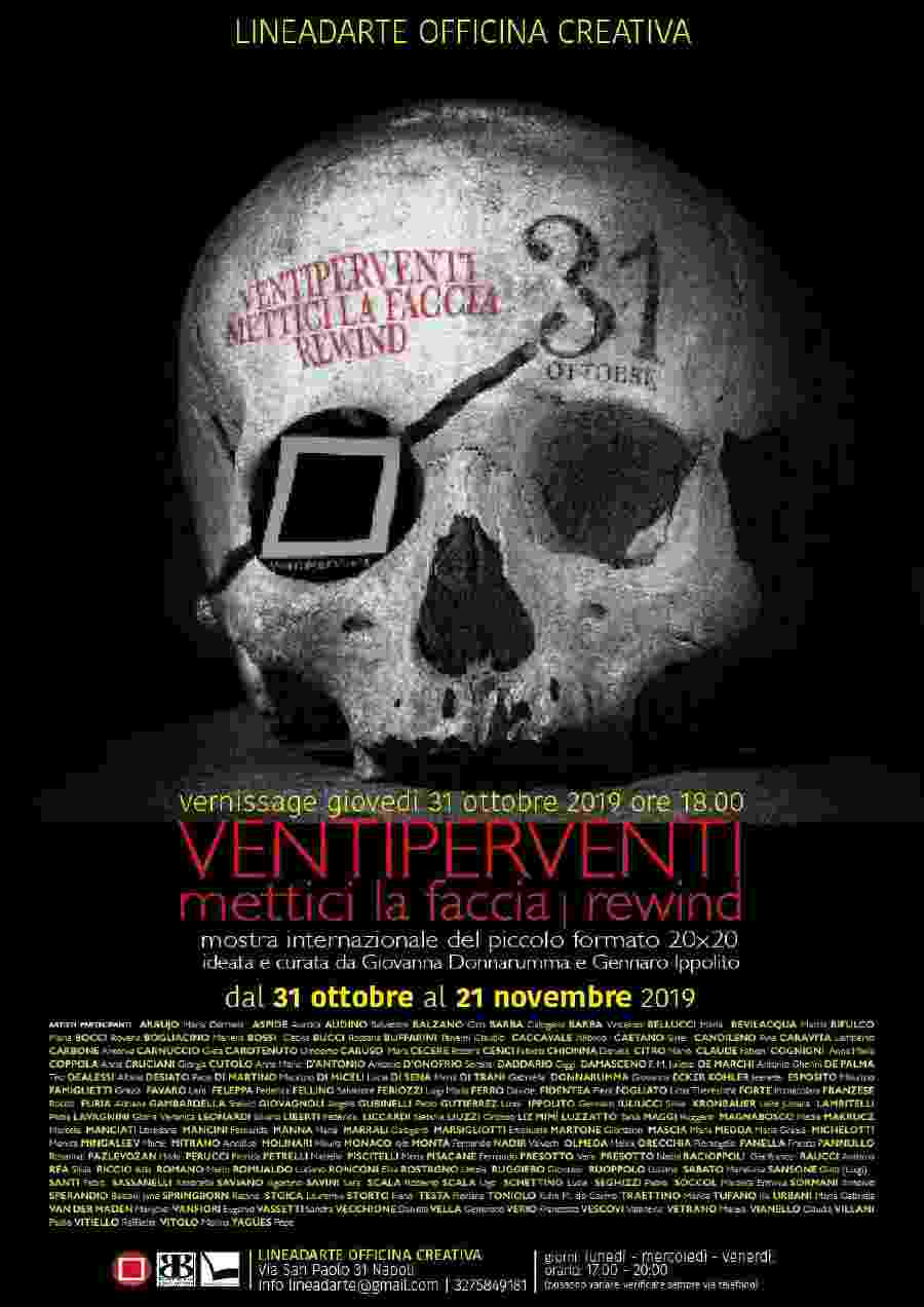 Giovedì 31 ottobre 2019 presso Lineadarte Officina creativa inaugura la Mostra internazionale del piccolo formato VENTIPERVENTI, 20 cm per 20 cm, la manifestazione giunta ormai alla undicesima edizione ha visto partecipare nel corso di questi anni oltre 2000 artisti, vi hanno aderito, francesi, brasiliani, messicani, belga, svizzeri, russi, statunitensi, giapponesi, serbi, spagnoli . Perché l’arte unisce