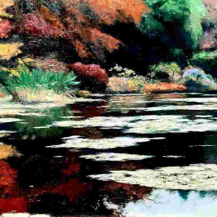 Celebre per le sue nature morte dalla intensa materia pittorica, dalla prospettiva decisa, dall’atmosfera evocativa, dal lieve influsso cezanniano, sperimenta ora l’amalgama del tempo e della luce ottocentesca della sua pittura, a diretto confronto con le grandi metropoli, con le vedute del mare, con le campagne vissute nel contemporaneo. Fino all’inedito pathos, quasi tropicale, per l’archetipo impressionista delle ninfee.